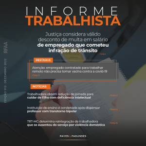 Nesta edição do Informe Trabalhista destacamos importantes decisões dos Tribunais, proferidas no mês de dezembro/2022, que tratam de temas...