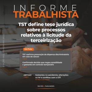 Nesta edição de nosso Informe Trabalhista, destacamos importantes decisões proferidas pelos Tribunais do Trabalho no mês de fevereiro/2022 envolvendo...