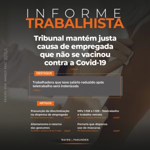 Nesta edição do Informe Trabalhista destacamos importantes decisões proferidas pelos Tribunais do Trabalho no mês de março/2022, envolvendo assuntos...